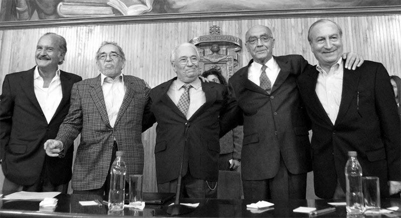 Carlos Fuentes, Gabriel Garcia Márquez, Belisario Betancur, José Saramago y Tomas Eloy Martínez en la Feria de Guadalajara.