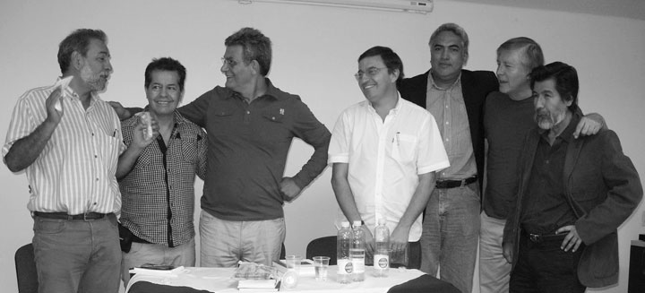 Julio César Londoño, Eduardo Delgado, MT Aguilera Garramuño, José Zuleta, Medardo Arias, Adolfo Montaño y Horacio Benavides durante una sesión de mutuos elogios.
